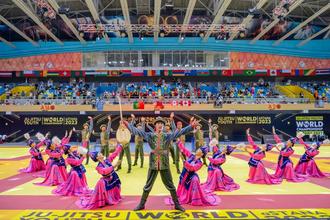 Im Anschluss an die Vorrundenkämpfe, folgte am Nachmittag eine bunte und stimmungsvolle Eröffnungsfeier mit kasachischer Musik, Gesang und einer beeindrucken folkloristischen Tanzgruppe in bunten und traditionellen Gewändern.