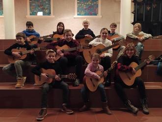 Für ein kleines vorweihnachtliches Konzert kamen eine Woche vor dem Heiligen Abend elf Gitarrenschüler von Alfred Schillmeier in der Aula der Grund- und Mittelschule zusammen, um bekannte und unbekannte Weihnachtslieder zu spielen – gesetzt für Melodie- und Begleitgitarre, aufgeführt in unterschiedlichen Besetzungen, von kleineren Gruppen bis zum Ensemble mit acht Mitgliedern.