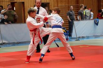 Nazar Trufen (roter Gürtel) vom TSV Bergen im Schlagabtausch mit Jonas Dindorf von den JJ Tigers Hutthurm.