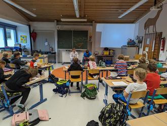Am Freitag, den 17.11.2023 besuchten acht Schülerinnen und Schüler des Annette-Kolb-Gymnasiums in Traunstein den Unterricht der Grundschule Bergen. Gekonnt lasen sie in Klasse eins bis vier aus verschiedenen Kinderbüchern vor. So wurden bei den jüngeren Kindern "Räuber Hotzenplotz", "Wir Kinder aus dem Möwenweg" oder "Der kleine Drache Kokosnuss" dargeboten. Die vierte Klasse hörte "Woodrider". Im Anschluss an den Lesevortrag wurden originelle Lesezeichen oder Ausmalbilder gestaltet oder Quizfragen gestellt. Passend zum ausgewählten Buch gab es manchmal auch noch etwas Leckeres, z.B. Drachenzungen, zum Probieren. Vielen Dank für eure Mühe!
