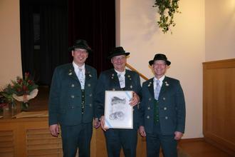 Das neue ernannte Ehrenmitglied Lorenz Gehmacher (Mitte) bei der Überreichung der Ehrenurkunde durch ersten Vorstand Martin Heigermoser (links) und zweiten Vorstand Herbert Schrobenhauser (rechts)