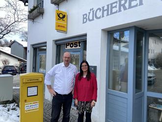 Ab 01.02.23 hat die Deutsche Post für die Postagentur in Bergen wieder eine Betreiberin gefunden. Monika Rouaichi, die bereits seit längerer Zeit die Postagenturen in Unterwössen und Grassau sehr erfolgreich führt, wird ab 1. Februar nun auch die Postagentur in Bergen öffnen. Neben den allgemeinen Postgeschäften können in der Agentur auch im kleinen Rahmen Schreibwaren gekauft werden. Mathias Wiesholler von der Deutschen Post AG zeigte sich sehr erfreut, dass in Bergen nun wieder eine Postagentur angeboten werden kann. Die Öffnungszeiten sind von Montag-Freitag von 9.00-12.30 Uhr und am Samstag von 9.00-11.00 Uhr.