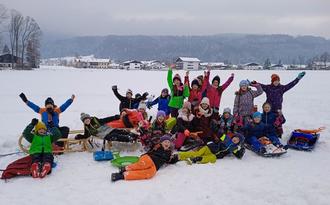 Am 24.1.2023 wagten sich die zweiten und die vierte Klasse der Grundschule Bergen kurzentschlossen zum Schlittenfahren zum Schellenberg. Zwar schien keine Sonne, aber dafür waren die Rodelbahnen perfekt und so schnell, dass so manchem Lehrer das Herz bis zum Halse klopfte. Unverdrossen wurden Schanzen gebaut, mit Schlitten, Rutscherln und Bobs befahren und mit einer Kugelpresse wunderschöne Smileyschneebälle geformt, die zu Bergen und langen Reihen aufgetürmt wurden. Auch für Brotzeit und heiße Getränke blieb ausreichend Zeit. Unverletzt und glücklich kehrten schließlich alle wieder zur Schule zurück.