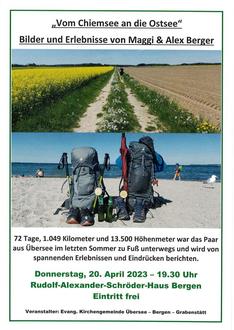 | 19.30 Uhr | Vortrag „Vom Chiemsee an die Ostsee“ mit Maggi & Alex Berger |