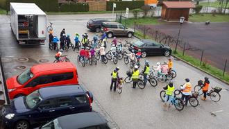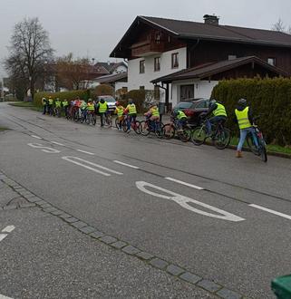 Nachdem alle Schüler der 4. Klasse die theoretische und die praktische Radlprüfung mit Bravour bestanden hatten, konnte am 19. April 2023 nach jahrelanger Pause, bedingt durch schlechtes Wetter oder Corona, wieder das Fahren im Realverkehr stattfinden.Die Polizisten Frau Rodler und Herr Obermair von der Jugendverkehrsschule Traunstein überprüften zunächst die Fahrräder der Kinder auf Verkehrssicherheit. Danach durfte, zuerst mit Begleitung der Polizisten und Helfer, dann auch alleine, eine vorgeschriebene Runde durch Bergen gefahren werden. Trotz des Nieselregens hatten alle viel Spaß und waren stolz, das während der Übungsstunden Gelernte im „echten“ Straßenverkehr anwenden zu können. Wir danken Frau Rodler und Herrn Obermair sehr für die Durchführung. Außerdem bedanken wir uns bei allen Helfern (Eltern und Omas), die sich als Streckenposten oder Begleitung der Kinder beim Radeln zur Verfügung gestellt haben.