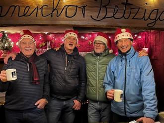 Großen Spaß hatten die Sänger vom Betzigauer Männerchor an ihrem Glühweinstand beim Weihnachtsmarkt. Toni, Wolfgang, Gise und Peter (v.l) verwöhnten die Gäste nicht nur mit Glühwein, Glühmost und Punsch, es gab auch frisch gehobelte Kässspatzen mit Bio-Eiern und bestem Käse aus Seltüren. Wir bedanken uns bei allen Gästen.