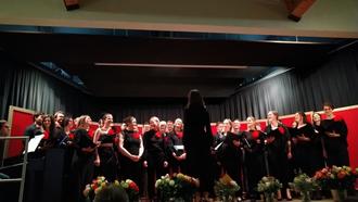 Zum Ausklang des gelungenen Konzerts sangen die Männer Amarillo und als Zugabe Auf das Leben. Zum Schluss waren beide Chöre mit Weit, weit weg von Hubert von Goisern auf der Bühne. Danach bekam jede Dame eine Rose mit auf den Nachhauseweg. Wir unterstützen in diesem Jahr aus dem Erlös die Einrichtung Lacrima- Trauerbegleitung für Kinder und Jugendliche der Johanniter-Unfall-Hilfe in Kempten.