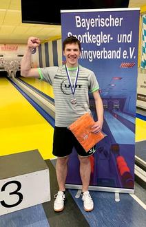 Mit einer Gesamtkegelzahl von 1192 glänzte Lukas Kennerknecht in Bamberg mit einer Bundesliga reifen Leistung. Nach 602 Kegeln (persönliche Bestleistung) im Vorlauf bestätigte Lukas seine Topform auch im Endlauf mit 590 Kegeln.