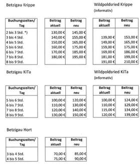 Informativ wurden unseren Gebühren den Kindergartengebühren des Kindergartens Wildpoldsried, als Teil der Pfarreiengemeinschaft, gegenübergestellt.