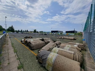 Bereits am Montag dieser Woche wurde schon der neue Rasenbelag der Fa. Tisca aus der Schweiz angeliefert, so dass die Fa. Haas ununterbrochen weiterarbeiten kann.