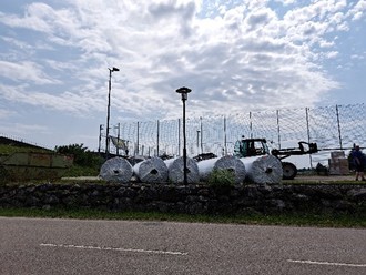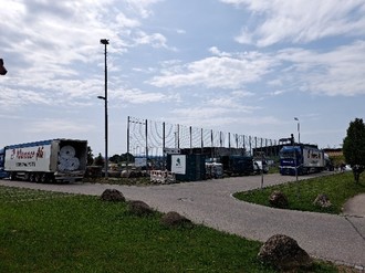 Die Fa. Haas, die mit der Ausführung dieser Arbeiten beauftragt wurde, hat am Montag vergangener Woche die Baustelle eingerichtet und am Mittwoch mit dem Abtrag des alten Rasenbelages begonnen und zum Abtransport bereitgelegt.