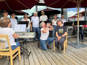 Am Samstag, den 28. Juni starteten die Sänger zu ihrem Jahresausflug, der sie heuer hinauf in luftige Höhen ans Fellhorn führte. Einen besonderen Charme hatte dieser Tag, da wir gemeinsam mit dem Chor Cantamus auf der großen Terrasse an der Mittelstation einen musikalischen Auftritt gestalten durften. Mit der Achtergondelbahn ging es hinauf in die wunderbare Bergwelt, dem Blumenberg des Allgäus, wo uns ein großartiges Bergpanorama erwartete. Unser Sänger Wolfgang Brugger hatte den Kontakt zum Management der Fellhornbahn geknüpft und diesen Auftritt im Rahmen des Kulturprogramms ermöglicht. Für die musikalische Darbietung traf unsere Dirigentin die passende Liederauswahl und so durften „Oh Allgäu mein“ und „Signore de le Cime“ in dem gut eineinhalb stündigen Programm natürlich nicht fehlen. Der Chor Cantamus unterhielt die Gäste auf der Sonnenterrasse mit seinem breit gefächerten Programm, das von einem Jodler bis zu „ Lass mich den Badewasser schlürfen“ reichte. Nach dem verdienten Mittagessen fuhren wir hinauf zum Gipfel, wo wir einen sagenhaften Rundum-Panorama-Bergblick erleben durften. Auf dem Rückweg ins Tal sangen wir in jeder Gaststätte extra für die Wirtsleute ein Ständchen, bis wir in der Fellhornstuben an der Talstation den Ausklang mit einem Schnaps besiegelten.