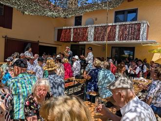 Nach dem Gottesdienst pilgerten die Besucher zum Festplatz, der von den Veranstaltern mit verschiedenen sonnengeschützen Plätzen optimal vorbereitet wurde. Zu den Klängen der Musikkapelle Betzigau war es möglich, gut zu essen und bei interessanten Unterhaltungen einen kurzweiligen Frühschoppen zu erleben. So waren über die Mittagszeit sehr viele Gäste da.