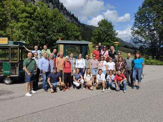 In Oberstdorf angekommen stiegen wir in das Markt-Bähnle um, das uns zuerst durch den Ort fuhr und sich dann Richtung Rohrmoos aufmachte. Durch die wunderschöne Landschaft des Oberallgäu (hier könnte man jetzt auch mal wirklich Oberland sagen) fuhren wir langsam und gemächlich immer weiter hoch. Als wir schließlich die Mautstraße geschafft hatten, erwartete uns erst einmal Kaffee und Kuchen zur Stärkung. Danach schwärmten wir in Grüppchen aus und erkundeten die Umgebung. Ein bisschen Bewegung muss sein, schließlich sind wir ein Sportverein!