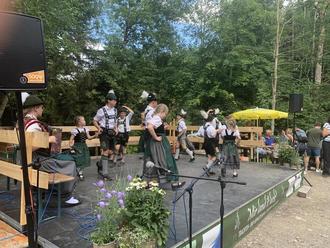 Dieses Jahr beteiligten wir uns wieder als Vereinigte Schützengesellschaft Betzigau-Leiterberg-Hochgreut an Kunst am Bach. Am 11. Juli ging es los mit dem aufbauen und am Samstag gegen Mittag war alles fertig und es konnte los gehen. Das Wetter war perfekt für dieses Event. Sehr viele Menschen kamen um sich „Kunst am Bach“ anzusehen. Auf unserer Waldbühne am Samstag trat der komplette Hochgreuter Trachtenverein auf. Als erstes plattelte die Plattlerjugend. Anschließend sorgten die Singfehla für musikalische Unterhaltung und dann traten noch die Geiselschnalzer auf und auch ein Sketch haben die Hochgreuter aufgeführt. Die Theatergruppe Betzigau spielte ein tolles kleines Theaterstück. Zum Schluss spielten noch die Blechigauer auf ihrer eigenen kleinen selbstgebauten Bühne. Sie spielten super und begleiteten uns den ganzen restlichen Abend.