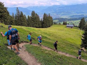 Bei toller Aussicht ging es dann über Aussichtspunkt Mittagberg zur Alpe Oberberg, auf der wir mit Live-Musik vom „Trio güde Frog“ empfangen wurden. Die Alpe bot uns eine Vielzahl von Spezialitäten, darunter frisch hergestellten Käse- und Wurstwaren sowie Qualitätsbier aus der Region.