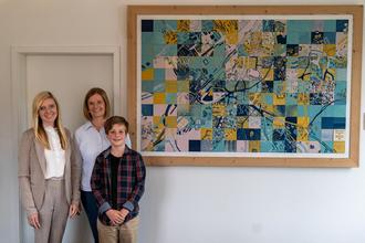 Katharina Zinnecker mit Sohn Felix Zinnecker und Regina Lässer-Dorn, 1. Bürgermeisterin.