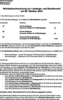 zur Landtags- und zur Bezirkswahl am 08. Oktober 2023