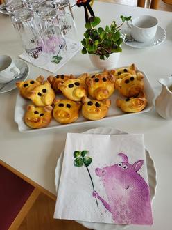 Passend zum Thema gab es beim Kaffee selbstgebackene Glücksschweine, die die Teilnehmer nicht nur kulinarisch erfreuten, sondern auch symbolisch für ein glückliches Jahr standen.