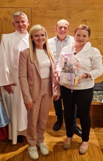 Im Beisein von Pater Jacek Filipiuk SSCC, unserem Kirchenpfleger Wilhelm Karg und allen in der KiTa Beschäftigten wurde die Leiterin unserer Kindertagesstätte, Frau Franziska Pätzold, für ihr 30-jähriges Dienstjubiläum geehrt. Pater Jacek bedankte sich bei Frau Pätzold für ihren unermüdlich Einsatz zum Wohle der uns anvertrauten Kinder und die ausgezeichnete Zusammenarbeit innerhalb der „KiTa-Familie“.