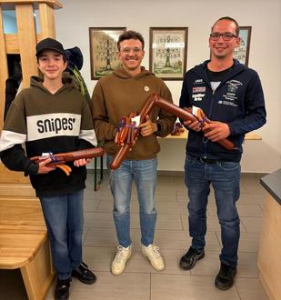 Zu gewinnen gab es kleine und große Wurstpakete vom Duracher Schlachthäusle, von XXL-Hartwurst bis zum Pfefferbeißer. Alle Teilnehmenden schossen auf eine 10er Serie und zogen zwei Karten. Die Kommawerte der Serie wurden anschließend zu den Kartenwerten addiert und ergaben die Platzierungen. Beim Wurstschießen geht niemand leer aus – die Preise sind gestaffelt und alle 47 Teilnehmende konnten ein kleines oder großes Wurstpaket mit nach Hause nehmen oder direkt vor Ort verzehren.