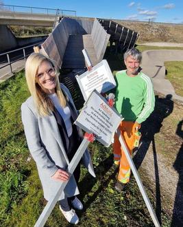 Zudem wurde ein Warnschild installiert, das Nutzer auf die Absturzgefahr am Geländer hinweisen soll.