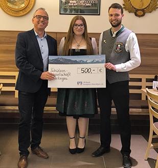 (v.l.nr. Richard Mayr, Jugendvorstand Pia Marka, 1. Schützenmeister Martin Bechteler)