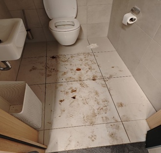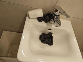 Im Waschbecken wurden nicht nur volle Hundekotbeutel deponiert, sondern darüber hinaus auch der Inhalt in der Toilette und sogar im Aufzug verteilt.