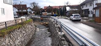 In enger Zusammenarbeit mit dem Flußmeister des Wasserwirtschaftsamt, der sehr professionell und zielstrebig mit seinen Mitarbeitern die Beschädigungen am Bachufer beseitigt hat, konnten wir daraufhin die Leitplanke wieder aufsetzen, so dass noch in dieser Woche auch an der Stelle die Mauerbefestigungsarbeiten durch das Wasserwirtschaftsamt Kempten abgeschlossen werden können.
