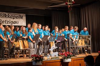 Die Jugendkapelle Dreiklang mit Kindern und Jugendlichen aus Betzigau, Lenzfried und St. Mang eröffnete das Konzert unter der gewohnten Leitung von Christina Geiger, die es immer wieder mit Bravur schafft, die jungen Menschen zu motivieren und ein spritziges Programm auf die Beine zu stellen. Dies bewiesen die Jungmusikerinnen und -musiker mit ihren fünf Stücken, darunter ein Medley der berühmten Band Abba und „Music Xperience“ von Jacob de Haan.