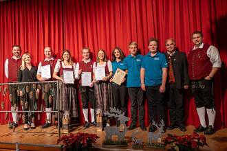 Besonders freut sich die Kapelle in diesem Jahr über den Zuwachs von vier Jungmusikanten: Aurelia Hiepp an der Querflöte, Anna Boneberg an der Trompete, Florian Lang am Tenorhorn und Moritz Zinnecker am Schlagzeug, die seit ein paar Monaten die verschiedenen Register tatkräftig unterstützen und nun ihr erstes Konzert bei „den Großen“ mitgespielt haben. Drei der Jugendlichen konnte außerdem zu erfolgreich abgelegten Bläserprüfungen gratuliert werden: Moritz Zinnecker zur D1-Prüfung und Anna Boneberg und Florian Lang zur D2-Prüfung.