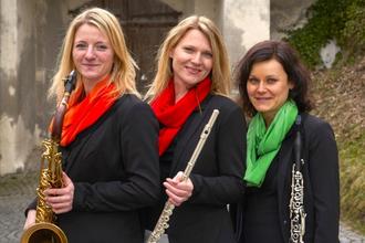 Die drei Musikerinnen von MADAME D´ANCHES aus der Region Ulm und dem Allgäu interpretieren sowohl klassische Kompositionen als auch unterhaltende Musik in einer Kombination aus Flöte, Klarinette/Klavier und Saxophon.