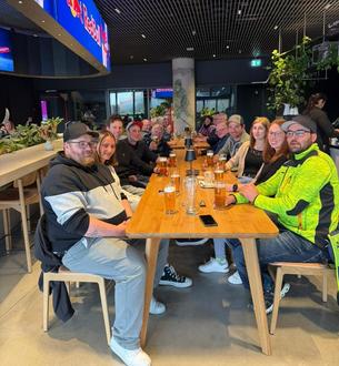 Danach ging es weiter nach München, wo ein Mittagessen im SAP Garden im Olympiapark wartete. Anschließend fand dort eine ausführliche Führung durch die 2024 fertiggestellte Eishockeyarena statt, inklusive einer Besichtigung der Spielerkabinen und einer der drei zusätzlichen Eisflächen, die zu Trainingszwecken und für die Öffentlichkeit genutzt werden.