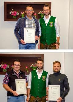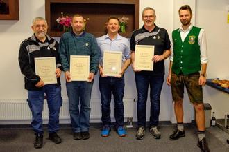 Nirgendwo wird das in den Medien viel zitierte Ehrenamt besser sichtbar als in den Vereinen und Einrichtungen eines Dorfes vor Ort. So war es Martin Bechteler eine besondere Freude die Ehrennadel "Für treue Mitarbeit" des Bezirks Schwabens an Manuel Hummel und Tim Langer für über 10 Jahre Engagement als Jugendtrainer zu verleihen. Auch der zweite Schützenmeister Michael Zeberle wurde mit dieser Ehrennadel für seine Vorstandsarbeit im Verein seit 2009 ausgezeichnet.