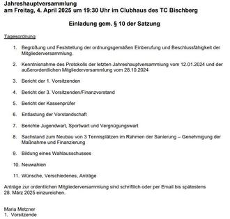 wir laden euch alle zu unser Jahreshauptversammlung ein und freuen uns über eine rege Teilnahme: