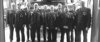 Bild v.l.n.r.: KBM Kügler, stellv. KDT Then, Bürgermeister Dütsch, KDT Raab, stellv. Landrat Keller, O. Then, KBI Schnapp, M. Weis, M. Kröner, W. Schmitt