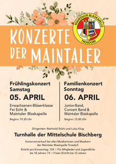 Karten gibt es bei allen Musikern, sowie beim 2.Vorsitzenden Dieter Hofmann (Hirtenstraße 2, 96120 Bischberg, Tel.: 09503/505456). Der Eintritt kostet je Konzert 10 Euro, für Mitglieder und Jugendliche 7 Euro. Kinder bis 12 Jahren sind frei.