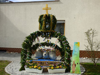 Vielen Dank an alle, die uns auch dieses Jahr wieder unterstützt haben, den Bischberger Osterbrunnen zu binden, zu schmücken und aufzustellen! Dieses Jahr hängen zusätzlich Eier am Brunnen, die die Kindergartenkinder aus St. Matthäus, Bischberg gestaltet haben.