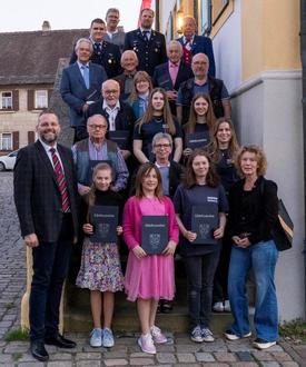 Zu Beginn wurden die Leistungen im sportliches bzw. kulturellen Bereich gewürdigt. Vier Vertreterinnen der Jugendfeuerwehr Tütschengereuth erhielten eine Ehrenurkunde sowie eine Anstecknadel für ihren ersten Platz beim Kreisjugendleistungsmarsch der Feuerwehren 2024. Bürgermeister Dütsch würdigte den außergewöhnlichen Teamgeist und die hohe Leistungsbereitschaft der Jugendlichen. Jugendwart Felix Pfohlmann und Betreuer Tobias Rottmann nahmen die Auszeichnung gemeinsam mit den jungen Feuerwehrmitgliedern Emma Brehm, Paula Brehm, Edda Pfohlmann und Ronja Pfohlmann entgegen.