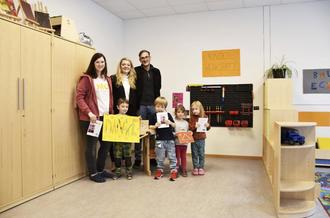Neben der Spende für die Kinder-Werkstatt hat das Team um Julian Burkard der Einrichtung auch noch zwei Akkus für den Krippenwagen geschenkt und eingebaut sowie die dazugehörige Ladestation erneuert. Die Kinder bedankten sich dafür herzlich mit einem selbstgemalten großen Danke-Plakat, das Julian Burkard mit in die Firma nehmen durfte.