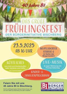 die Bürgerinitiative BI als unabhängige, freie und überparteiliche Wählergemeinschaft für Bischberg, Trosdorf, Tütschengereuth und Weipelsdorf feiert ihr 40-jähriges Bestehen mit einem Frühlingsfest.