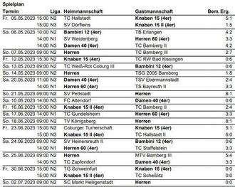 Wir informieren gerne über die Ergebnisse der laufenden Spielzeit und möchten hier eine Vorschau bis Anfang Juli 2023 bieten - Zuschauer:innen sind jederzeit herzlich willkommen!