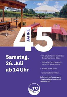 vor nunmehr 45 Jahren wurde unser Tennisclub Blau-Weiß Bischberg 1980 e.V. gegründet. Das wollen wir mit einem Sommerfest feiern.
