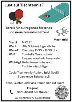 wir freuen uns, Euch beim Tischtennis begrüßen zu dürfen.