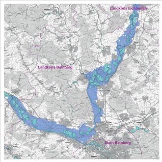 | (1) | 1In den Gemeinden Zapfendorf, Rattelsdorf, Baunach, Breitengüßbach, Kemmern, Hallstadt, Bischberg, Oberhaid, Viereth-Trunstadt, im Landkreis Bamberg sowie in der Stadt Bamberg wird das in § 2 näher beschriebene Überschwemmungsgebiet festgesetzt. 2Das Überschwemmungsgebiet betrifft die in § 2 dargestellten Flächen, die bei einem 100-jährlichen Hochwasser überschwemmt oder durchflossen oder die für Hochwasserentlastung oder Rückhaltung beansprucht werden.³Für dieses Gebiet werden die folgenden Regelungen erlassen. |