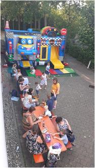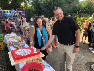 Im Anschluss an das gut einstündige Konzert feierten alle großen und kleinen Gäste im Freien bei sommerlichen, aber erträglichen Temperaturen bis in den frühen Abend mit reichlich Essen und Getränken, einer riesigen Frohsinns-Geburtstagstorte, Kinder-Tattoo-Schminken und großer Hüpfburg den Vereins-Geburtstag mit viel Spaß, Action und guten Gesprächen.