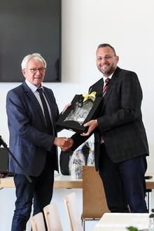 Landrat Kalb übergibt Geschenk an Bürgermeister Dütsch