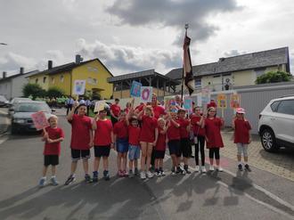 Selbstverständlich war unser GV Frohsinn mit dabei. Viel Aufregung und Spaß hatten unsere „Jüngsten“, denn sie marschierten mit ihrem selbst gestalteten „Frohsinns-Schriftzug“ mit.