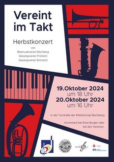 Wir laden alle Freunde des Chorgesangs und der Blasmusik ganz herzlich zu unserem Gemeinschaftskonzert „Vereint im Takt“ ein. Mit fast 100 Musikern und Sängern haben wir ein buntes Konzert aus traditionellen und modernen Liedern auf die Beine gestellt. Die Blasmusik und die Erwachsenen-Chöre treten an beiden Tagen mit eigenen, aber auch mit mehreren gemeinsamen Stücken auf. Außerdem singt am Samstag im Konzert der Nachwuchs des GV Frohsinns und des GV Eintracht. Am Sonntag spielen die Junior- und die Concertband des Blasmusikvereins.