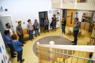 Seit Ende August ist der Neubau der Diakonie-Kita St. Matthäus in Bischberg tagsüber gefüllt mit Leben: Die Kita-Kinder sind eingezogen. Das Gebäude wird aber über die Nutzung als Kita hinaus zu einem Ort der Begegnung werden. Hintergrund: Das Grundstück, auf dem die Kita gebaut ist, gehört der evangelischen Kirche. Ab sofort steht der Mehrzweckraum der Diakonie-Kita auch der Kirchengemeinde nach Kita-Schluss zur Nutzung zur Verfügung. Und die erste Kirchenvorstandssitzung fand mittlerweile in den Räumen der Diakonie-Kita statt. Pfarrerin Jutta Schnurr, der Kirchenvorstand und weitere engagierte Menschen aus der evang.-luth. Kirchengemeinde ließen sich von Tanja Burkard die neue Kita zeigen und über die pädagogischen Schwerpunkte im Haus berichten. Sie freuten sich sehr über die Nutzung der ehemaligen „Gemeindewiese“, auf der mit der Kita St. Matthäus ein Ort entstanden ist, an dem sich die Kinder wohl fühlen und der zu einem Ort des Miteinanders geworden ist. Bereits vor Umzug der Kita an den Klingenberg waren Kirchengemeinde und Diakonie-Kita gut vernetzt. Der Name der Kita zeigt seit Eröffnung der Einrichtung die enge Verbundenheit. Mit der räumlichen Nutzung wünschen sich beide Seiten noch ein weiteres Zusammenwachsen. Und so wurde an diesem ersten Kirchenvorstandsabend in der Kita St. Matthäus bereits über gemeinsame Aktionen und Feste nachgedacht.